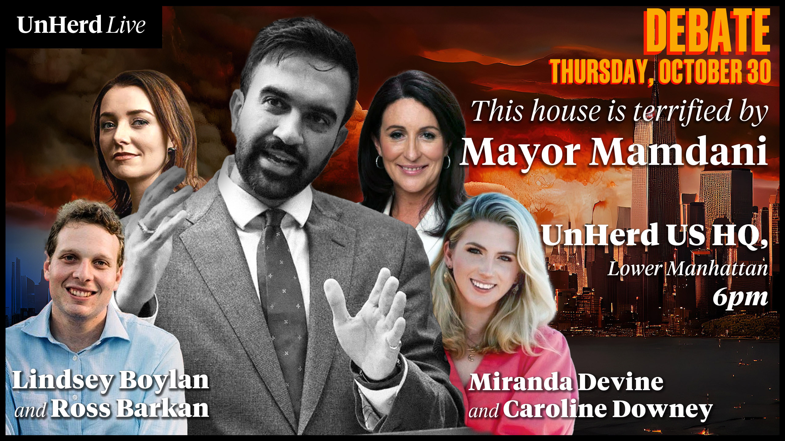 Join UnHerd for an exclusive in-person debate at our Manhattan headquarters, featuring our columnist Ross Barkan and progressive activist and whistleblower Lindsey Boylan (in support of Mamdani) versus the New York Post’s Miranda Devine and National Review’s Caroline Downey (in opposition).